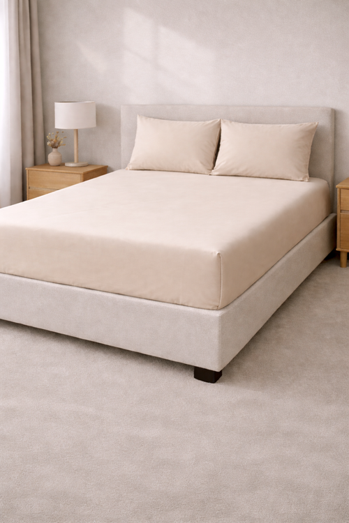 Fitted sheet - Microfiber - Solid - Beige